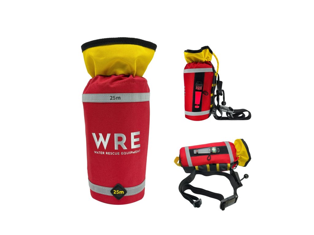 Profesionální záchranný házecí pytlík WRE s 25m reflexním plovoucím lanem a samostatným nosným popruhem do pasu s možností rychlého odpálení házečky, je nezbytnou pomůckou pro rychlou a efektivní pomoc při záchraně z vody a zamrznutých ploch. Jako první na trhu mají naše házečky na boku suchý zip pro upevnění vodotěsného bezpečnostního světla WRE pro lepší viditelnost při zásahu za zhoršené viditelnosti.
