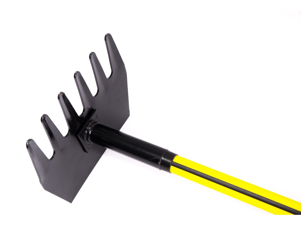 Vybaveno 6 žebrovanými zuby na jedné straně pro maximální odolnost a ostřím připomínajícím motyku na druhé straně.
