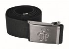 Elastický opasek s kovovou sponou k pracovním oděvům.