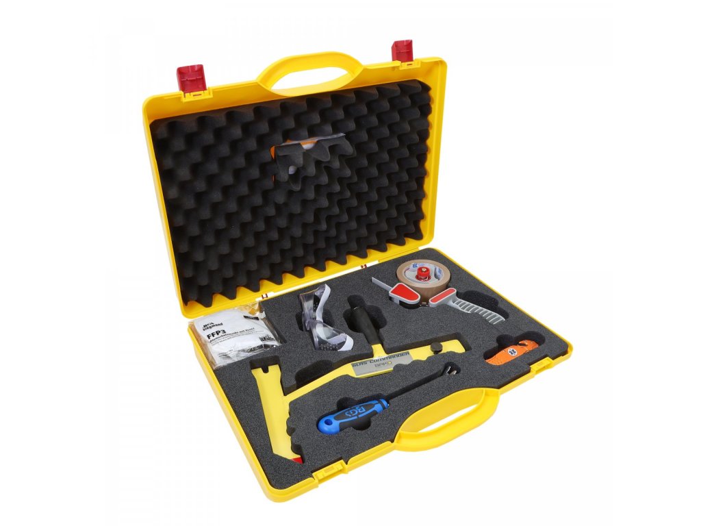 Sada se skládá: řezač skel, okenní průbojník a montážní svorky