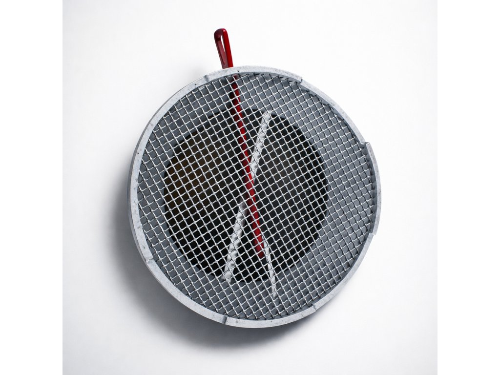 Trychtýř s vnějším průměrem 220 mm a nerezovým sítem 10 x 10 nebo 5 x 5 mm a eloxovanou páčkou v červené, modré nebo černé barvě.