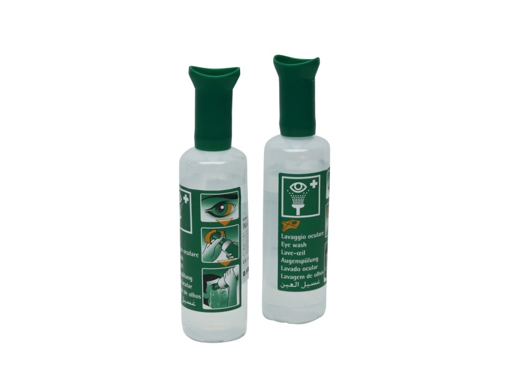 Pro pohotovou první pomoc při zasažení očí nebezpečnou látkou. Lahev na vyplachování očí má ergonomicky tvarovanou oční misku pro otevření očního víčka, výplachová kapalina se pak dostane přímo na poraněné oko. Láhev 500 ml vystačí na cca 4 minuty intenzivního vyplachování.