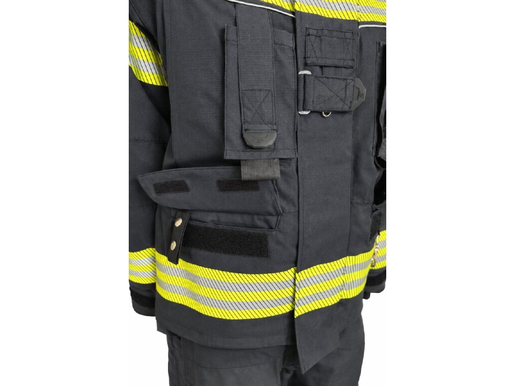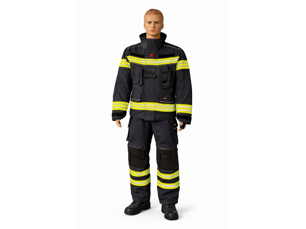 Inovovaný stříh - krátký kabát s prodlouženou zadní částí, ergonomicky tvarovaný límec s nastavitelnou šířkou.Klíny pro volnost pohybu pod pažemi, rukávy s ochrannou hranou z Nomexu®/Kevlaru® se silikonovo-uhlíkovým povlakem, nastavitelná šířka, pletený lem s ITC systémem. Oblek je vybaven membránou GORE-TEX® FIREBLOCKER.